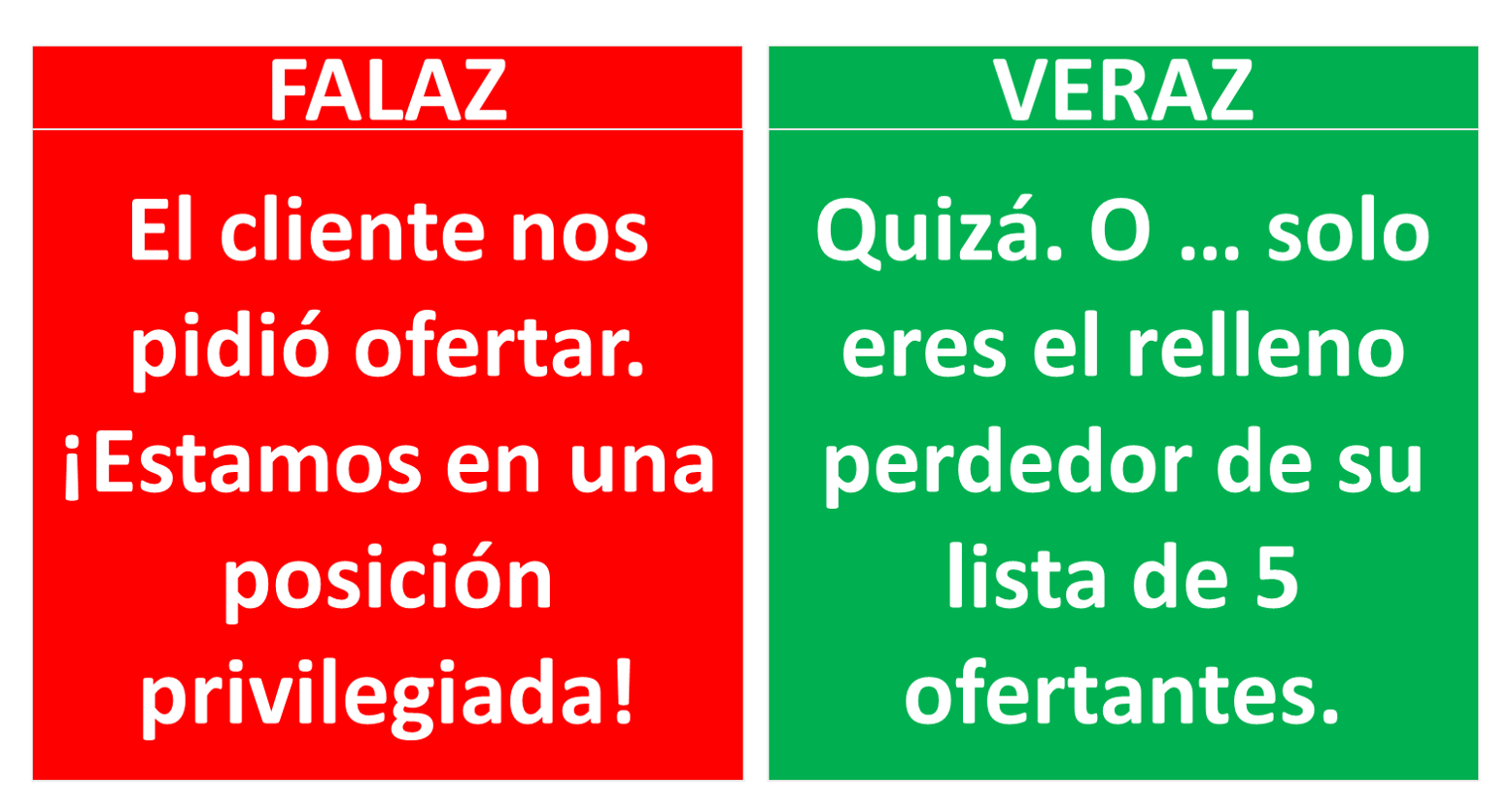 ¿Veraz o Falaz? #2 “El cliente nos ha pedido que pujemos, así que estamos en una posición privilegiada.”